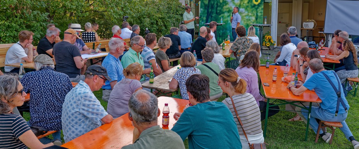 • Beim jährlichen Sommerfest "Politik und Party" 2025 zum Thema Windkraft konnten wir bei bestem Wetter in Holzbronn mehr über Genehmigungsverfahren, Bürgerbeteiligungsarten und Naturschutz erfahren.